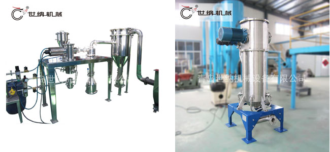 除塵器(qì)收集,粗顆粒被分級葉(yè)輪甩出並下降至粉碎區繼續粉碎。