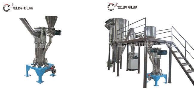 引風機、電控櫃等組成。壓(yā)縮空氣經過濾(lǜ)幹燥除油後,通過特殊配置的噴嘴高速噴射入粉碎腔內,在高壓氣