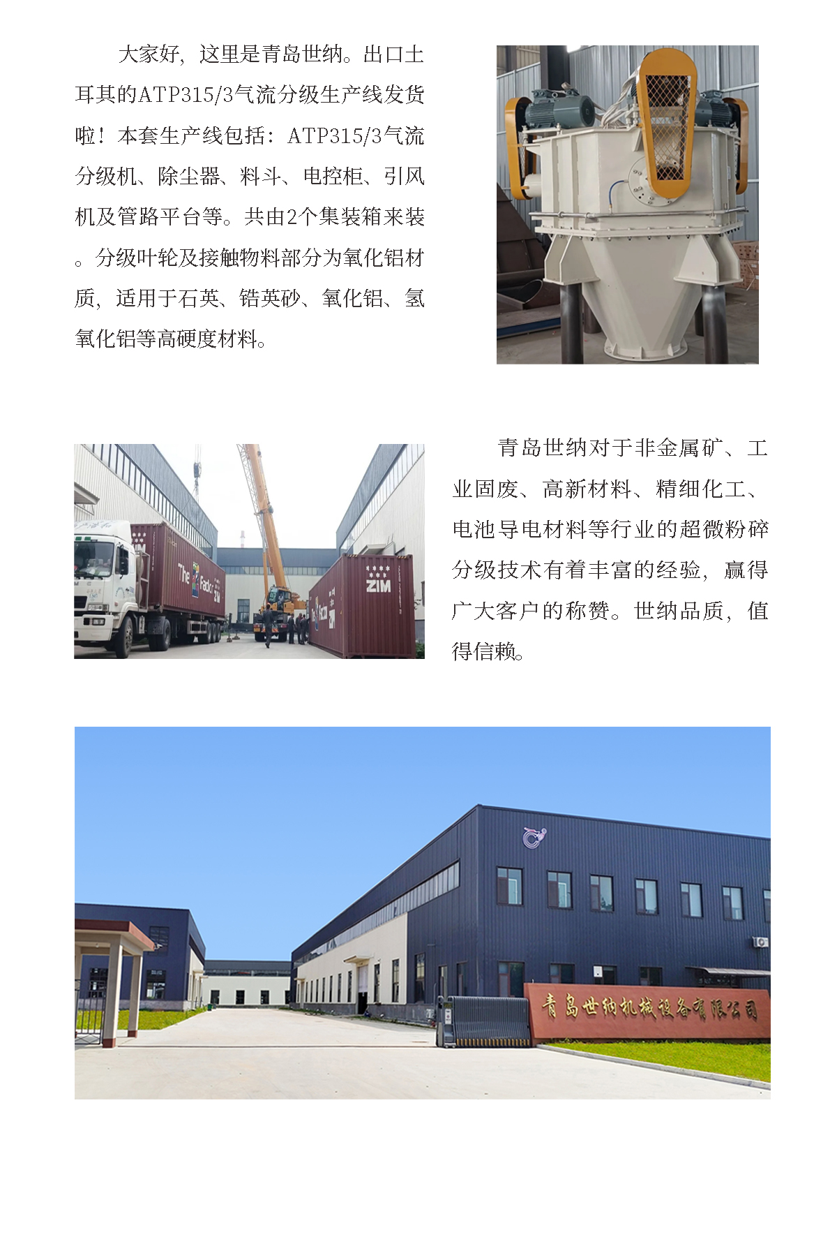【青島www.17.com嫩草】出口土耳其的ATP315/3氣流分級生產線發貨現(xiàn)場