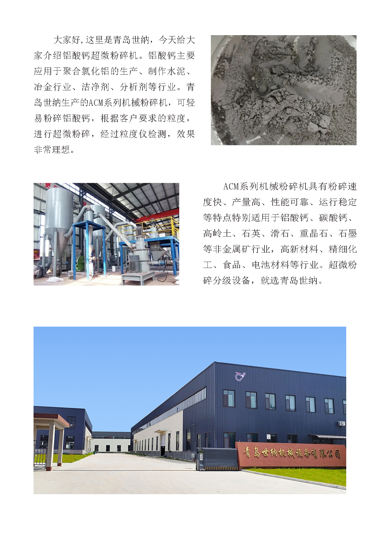 【青島www.17.com嫩草(nà)】鋁酸(suān)鈣超微機械粉碎生產(chǎn)線粉碎實驗